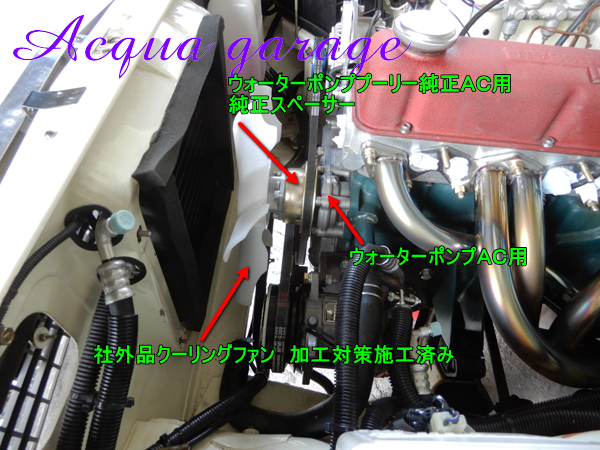 *AC無し用ウォーターポンプ+AC無し用プーリーに社外品のクーリングファンを取付するのみ
