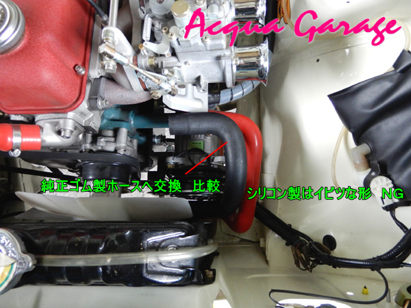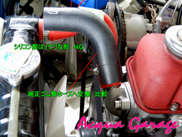 純正ゴム製ラジエーターホースと社外品シリコンホースの比較