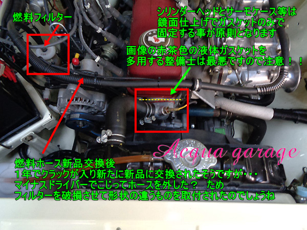 作業をしたメカニックが手抜きをした事も原因で水漏れを起こして液体ガスケットを大量に塗ったのだと推測します