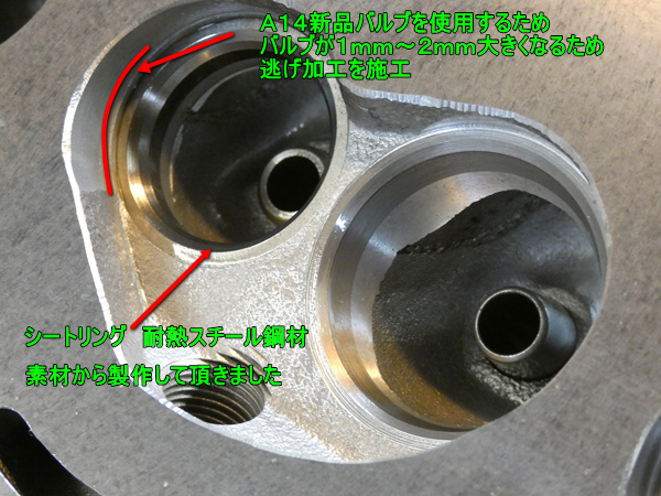 A12よりも1mm~3mm程度、バルブ外形が大きくなりますので燃焼室も最小の加工を施工しております