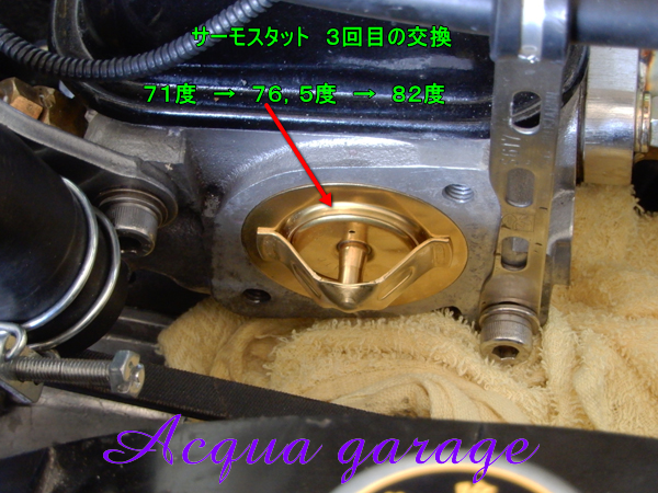 以前、搭載されていたA12エンジンの時にはサーモスタット・71度の取付
