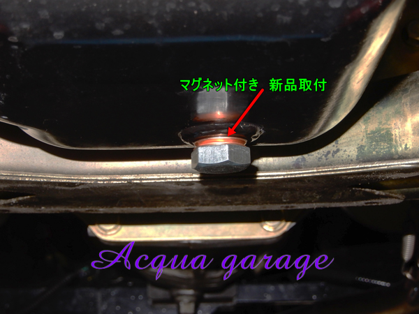 左側のドレンプラグの上部は金属片ではありません / 黒色に塗装をされていた色となります