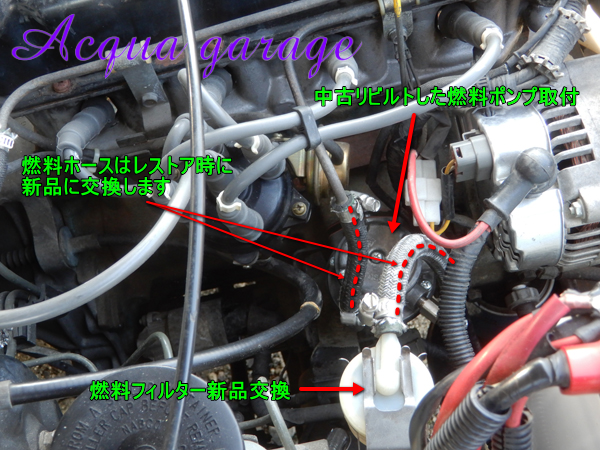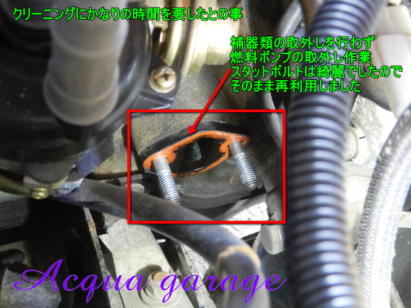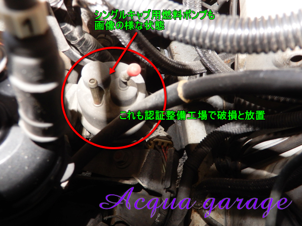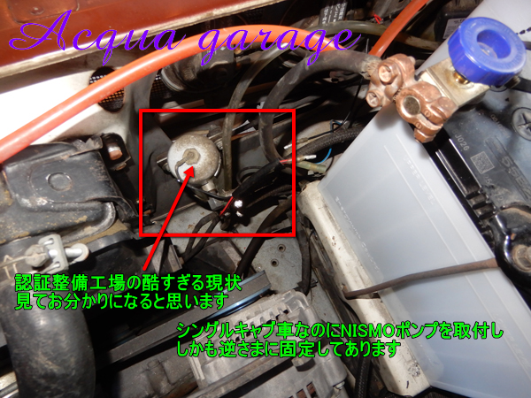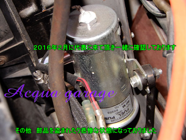 燃料ポンプをシングルキャブ用に戻す作業 → 認証整備工場がサニトラを壊し部品を盗んでいた事など悲惨な状態