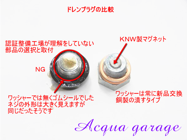 上下の画像は認証整備工場が使用していた部品でドレンガスケットはNG