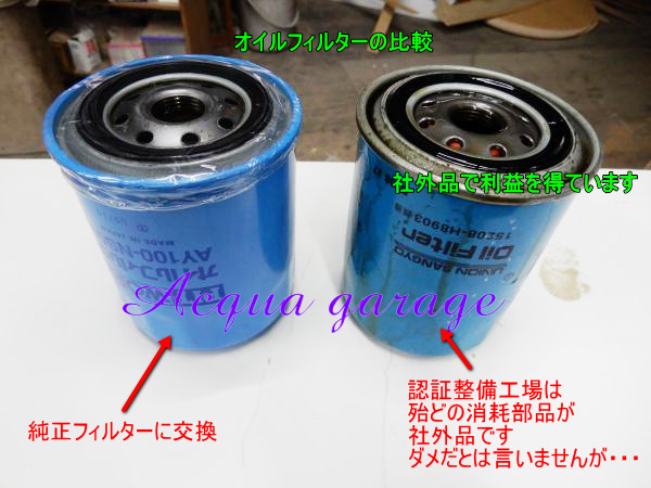 認証工場などでは社外部品を使用する事で利益を出しております → 消耗品についてほぼ純正品は使用していません