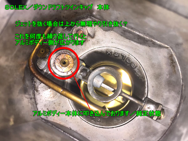 エアージェットが、キャブレターのアルミボディーに圧入/叩き込まれておりました???