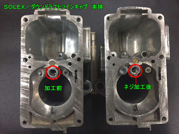 樹脂サンプルが届く前にキャブボディー側の加工 / ネジ切り加工